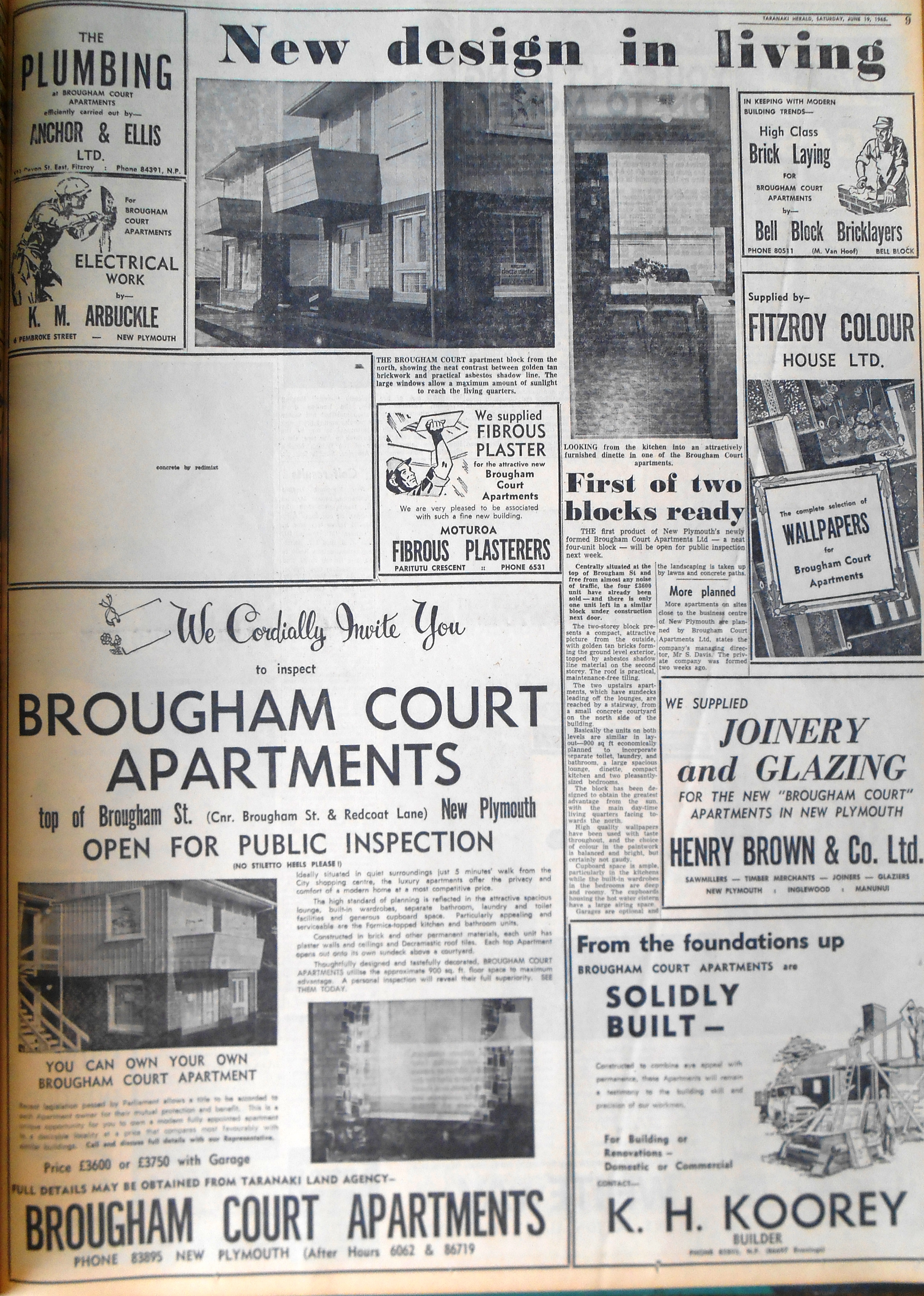 Brougham Court Apartments Advertisement (Taranaki Herald 19 June 1965)